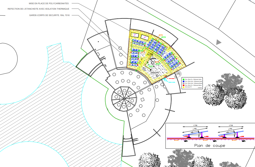 Nature des travaux : Installation photovoltaïque en toiture sur plots d’étanchéité d’une puissance de 16 kWc
